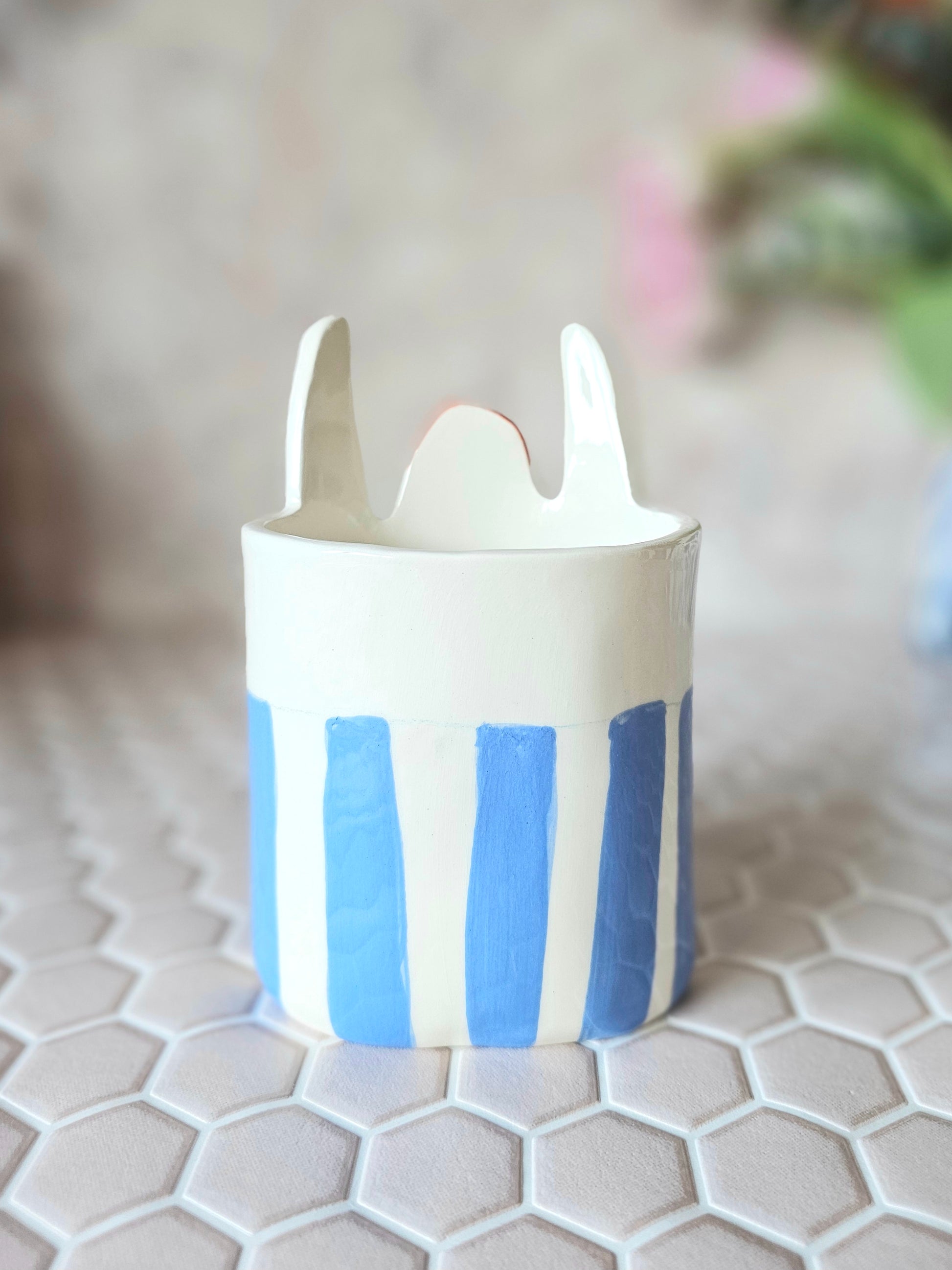 Sylvia the swimmer handmade ceramic pot toothbrush holder- made to order